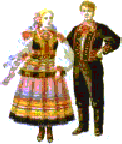 O traje feminino - A saia das mulheres é geralmente num tom azul bordado com flores. Usam um avental branco, bem plissado. A camisa é branca, sobre ela usam um colete de veludo de cor verde e sobre os ombros um lenço lilás. Na cabeça uma touca verde e nos pés meias brancas grossas e sapatilhas pretas.